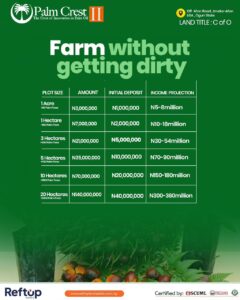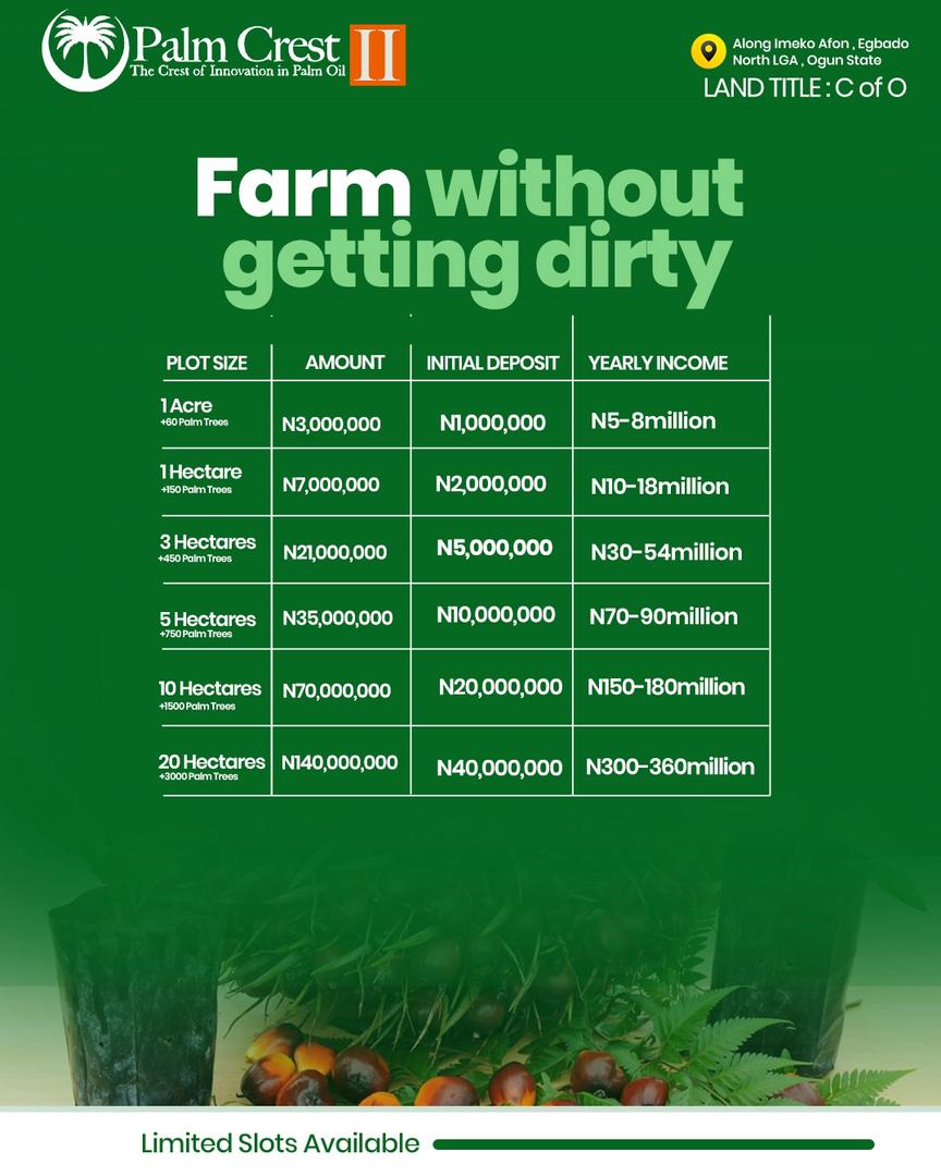 Own a fully managed palm oil farm land property and sit back to enjoy maximum return of investment passively without doing the work